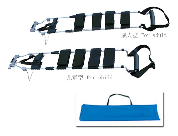 由鋁合金制成,長度可調(diào)節(jié),有尼龍綁腿帶子的自動(dòng)牽引裝置。